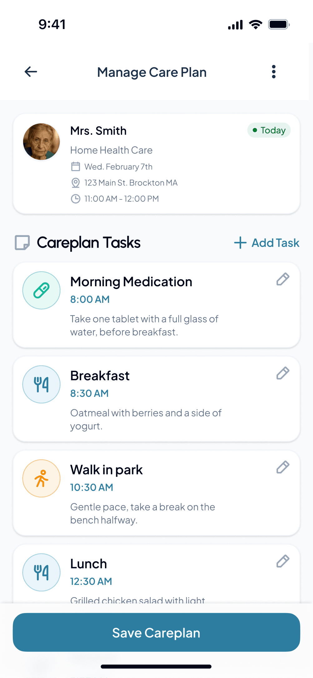 A centralized platform that connects families, caregivers, and care plans in real time.